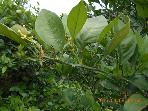 大部分柑桔品種,開花較早所結(jié)的果實生長快、果實大、果皮光滑,果實品質(zhì)好,但坐果率低。開花較晚所結(jié)的果實生長較慢、果實小、果皮厚,果實品質(zhì)不佳,但因開花較晚,氣溫升高,晚花果的坐果率較高。為了提高果實品質(zhì),可以進(jìn)行適當(dāng)保果,減少早花果的脫落,增加早花果比例。到第二次生理落果基本結(jié)束時,進(jìn)行人工疏果,將小果,次果等摘除。