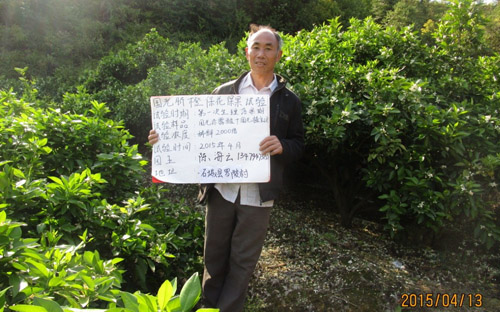 2015年4月,江西省贛州市石城縣沙段村,在臍橙謝花2/3和第二次生理落果期使用兩次“國光植生源2000-2500倍+赤霉酸2000-2500倍+氨基酸水溶肥1000倍”葉面噴施,使用后的臍橙葉片深綠,光澤度好,坐果率高,果型均勻,保果效果明顯。