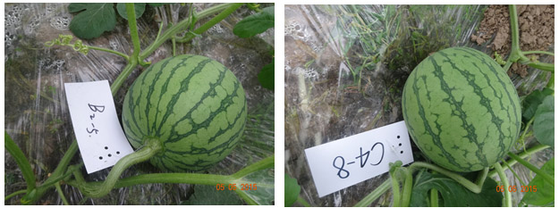 2015年4月,我們江西瑞金武陽(yáng)鎮(zhèn)帥童無(wú)籽瓜上做了國(guó)光座瓜靈(0.1%氯吡脲)提高西瓜坐瓜率試驗(yàn)示范。試驗(yàn)結(jié)果表明:在西瓜雌花開(kāi)放當(dāng)天,用國(guó)光座瓜靈10毫升兌水1.5-2公斤,噴施瓜胎正反面,可明顯提高西瓜坐果率,用藥的西瓜生長(zhǎng)良好,果型端正。
