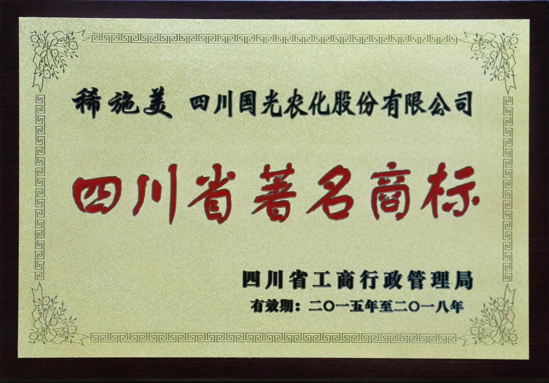 “稀施美”商標(biāo)是繼“國光”、“矮豐”兩件“著名商標(biāo)”之后我公司獲得的第三件四川省“著名商標(biāo)”。