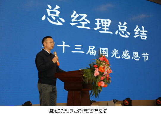 國(guó)光總經(jīng)理顏亞奇作了感恩節(jié)總結(jié),表示:“一個(gè)真正愛(ài)護(hù)員工的企業(yè),會(huì)對(duì)員工的健康、家庭、子女各方面進(jìn)行關(guān)心,此次我們擴(kuò)展感恩節(jié)的內(nèi)容及形式,邀請(qǐng)國(guó)學(xué)老師幫助員工建立良好的家風(fēng)家教;通過(guò)案例幫助員工教育好子女;進(jìn)行了職業(yè)健康、法制、防止上當(dāng)受騙等教育,都是公司對(duì)員工及員工家屬具體感恩行動(dòng)的表現(xiàn),這些教育起到的作用遠(yuǎn)大于物質(zhì)和金錢(qián)。國(guó)光是一個(gè)大家庭,國(guó)光每一位員工都是大家庭中的一份子,只有每一位成員的小家過(guò)好,國(guó)光這個(gè)大家才會(huì)好,我希望全體國(guó)光人都能從本次感恩節(jié)教育中得到啟發(fā),從中受益,為自己的‘小家’也為共同的‘大家’活出更好的自己,貢獻(xiàn)更多的力量!