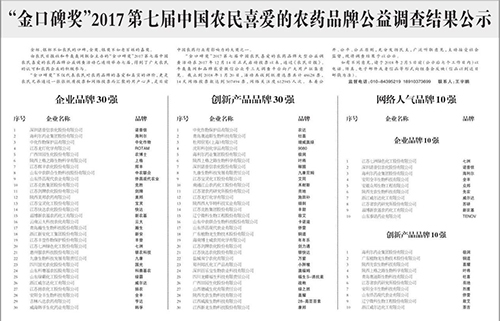 國(guó)光榮獲“2017金口碑獎(jiǎng)”,該獎(jiǎng)代表農(nóng)民對(duì)農(nóng)藥品牌的喜愛(ài)和真實(shí)的評(píng)價(jià),是目前中國(guó)農(nóng)藥行業(yè)有影響力的大獎(jiǎng)之一。