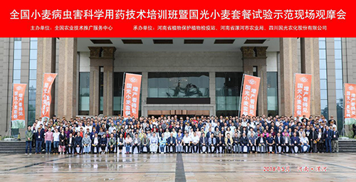 2018年5月21日—22日,由全國(guó)農(nóng)業(yè)技術(shù)推廣服務(wù)中心主辦,河南省植物保護(hù)植物檢疫站、河南省漯河市農(nóng)業(yè)局、四川國(guó)光聯(lián)合承辦的全國(guó)小麥病蟲(chóng)害科學(xué)用藥技術(shù)培訓(xùn)班在河南省漯河市召開(kāi)。全國(guó)農(nóng)業(yè)技術(shù)推廣服務(wù)中心農(nóng)藥與藥械處處長(zhǎng)王鳳樂(lè)、副處長(zhǎng)張帥、河南省植物保護(hù)植物檢疫站站長(zhǎng)李好海、副站長(zhǎng)韓世平、漯河市農(nóng)業(yè)局局長(zhǎng)齊建偉、中國(guó)農(nóng)科院麻類研究所所長(zhǎng),中國(guó)植保學(xué)會(huì)理事長(zhǎng)陳萬(wàn)權(quán)、中國(guó)農(nóng)科院植保所研究員李香菊出席大會(huì)。本次大會(huì)立足于“農(nóng)業(yè)有干頭、農(nóng)村有看頭、農(nóng)民有盼頭”的鄉(xiāng)村振興課題,針對(duì)小麥的病蟲(chóng)害科學(xué)用藥技術(shù)作了廣泛研討,吸引了全國(guó)小麥主產(chǎn)區(qū)植保系統(tǒng)的領(lǐng)導(dǎo)專家、種植大戶、農(nóng)資渠道商共300余人到會(huì)。