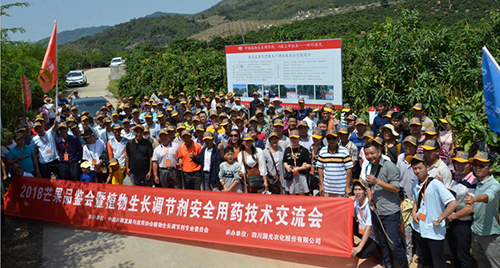 2018年3月30日—31日,由中國農藥發(fā)展與應用協(xié)會植物生長調節(jié)劑專業(yè)委員會主辦,國光承辦的2018芒果品鑒會暨植物生長調節(jié)劑(簡稱:植調劑)安全用藥技術交流會在三亞召開,海南省農業(yè)科學院院長張治禮;中國熱帶農業(yè)科學院副院長劉國道;全國農業(yè)技術推廣服務中心農藥與藥械處處長王鳳樂;中國農藥發(fā)展與應用協(xié)會秘書長花榮軍;廣西省農科院白先進研究員;中國農業(yè)大學農學院教授、長江學者、植調劑專委會主任段留生等領導、專家出席。農民日報、農資導報全程跟蹤報道。
