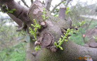 青花椒自然生長狀態(tài)下的萌芽是從枝條的形態(tài)學上端到形態(tài)學下端逐步萌動的,導致自然狀態(tài)下青花椒的開花只有上半部分處在時期正常能形成有效的產(chǎn)量,而下半部分的花芽開放的時候已經(jīng)明顯偏晚導致最后采摘的時候花椒因脫落嚴重而不能形成產(chǎn)量。