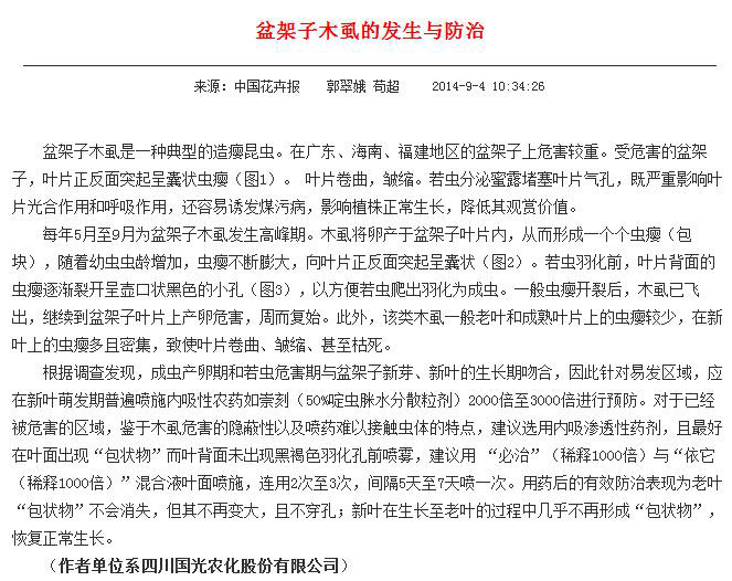 2、根據(jù)調查發(fā)現(xiàn),成蟲產(chǎn)卵期和若蟲危害期與盆架子新芽、新葉的生長期吻合,因此針對易發(fā)區(qū)域,應建議在新葉萌發(fā)期普遍噴施內吸性的農藥如崇刻(50%啶蟲脒水分散粒劑)2000-3000倍進行預防。若已經(jīng)被危害的區(qū)域,鑒于木虱危害的隱蔽性以及噴藥難以接觸蟲體的特點,建議選用內吸滲透性藥劑,且最好在葉面出現(xiàn)“包狀物”而葉背面未出現(xiàn)黑褐色羽化孔前噴霧,建議用 “必治”(稀釋1000倍)與“依它(稀釋1000倍)”混合液葉面噴施,連用2-3次,間隔5-7天噴一次; 此方案用藥前后的對比如下(見圖4、圖5)。